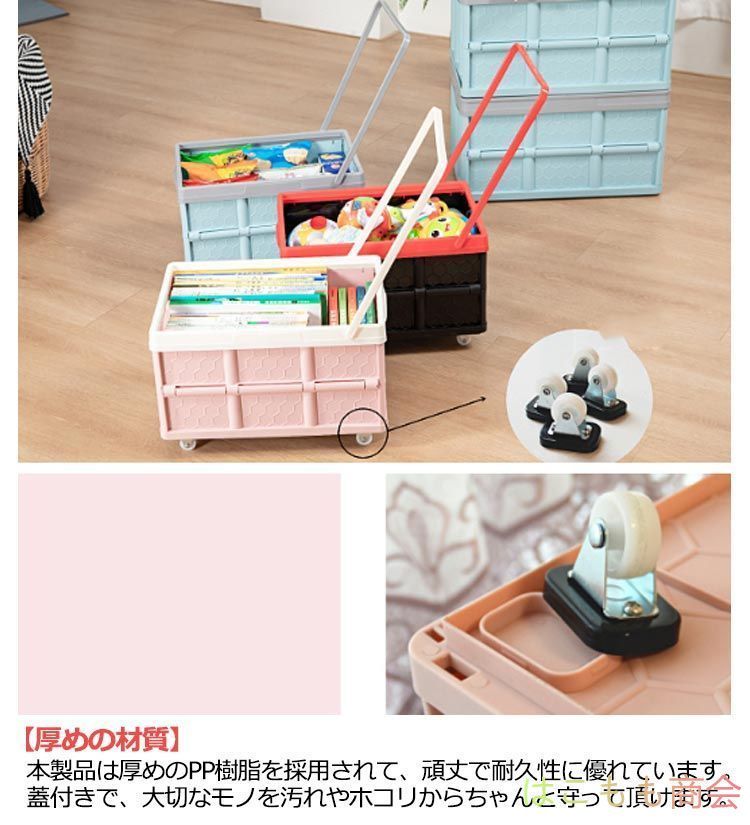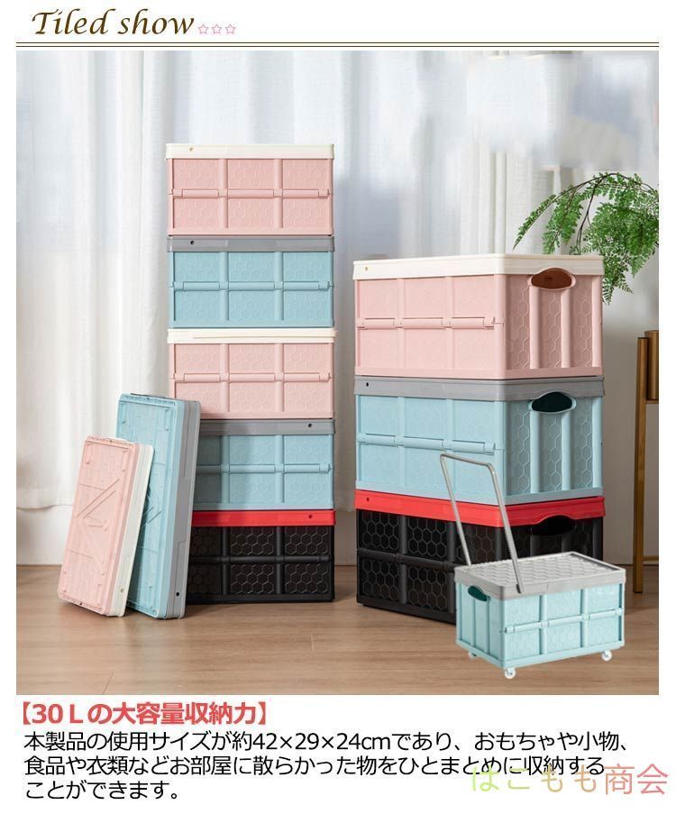 キャスター付き、ハンドル付き、マルチ収納できるコンテナボックス。買い物用キャリーカートとしても!【30L】