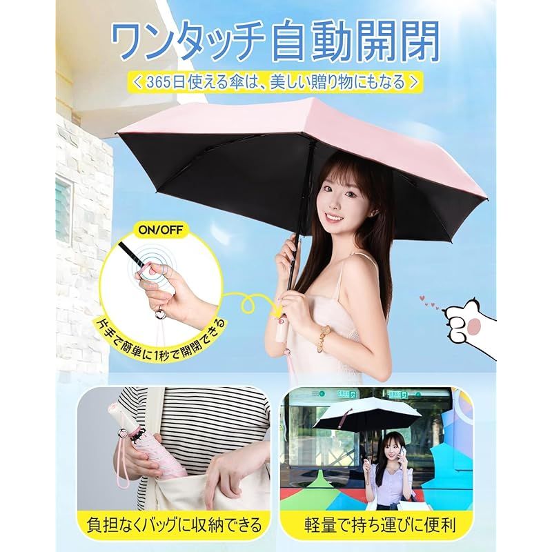 商品名:日傘 折りたたみ日傘 uvカット 100 遮光 折り畳み傘 完全遮光 遮熱 ワンタッチ自動開閉 晴雨兼用 軽量 耐風頑丈 携帯便利 収納ポーチ付き かわいい 日傘兼用雨傘 レディース メン 通勤 旅行 母の日 父の日 プレゼント (ライトピンク)